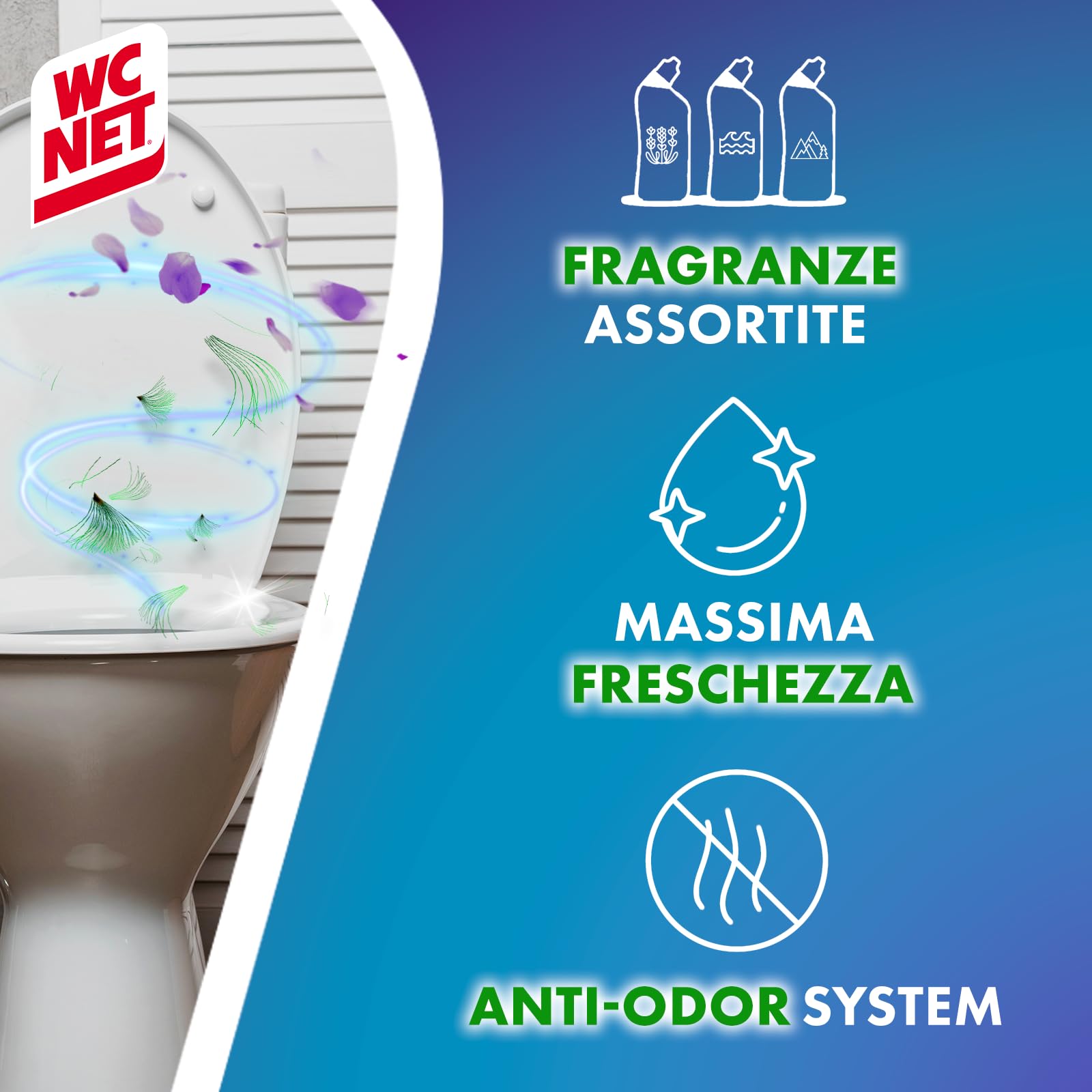 Wc Net - Profumoso Gel, Anticalcare e Igienizzante per WC, Tripacco Mono Fragranza a Seconda della Disponibilità, 3 Flaconi da 700 ml